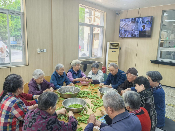 活动当天,福利院的食堂里洋溢着欢声笑语。老人们围坐在一起,熟练地挑选、剥着青翠的蚕豆、豌豆。“立夏吃蚕豆,眼睛亮堂堂!”91岁的张爷爷一边剥豆,一边笑着回忆儿时母亲煮立夏饭的场景。工作人员也加入其中准备食材,包括剥笋、剥豆、洗土豆、切肉等,在温馨互动中重温传统习俗,感受节日的温暖氛围。在大家的协作下,新鲜的蚕豆、豌豆很快剥好,与糯米、咸肉、笋等食材一同下锅炒制,炒出的立夏饭香而有嚼劲。在大家的共同努力下,香气扑鼻的立夏饭出炉了,立夏饭的香气弥漫整个食堂,不仅满足了味蕾,更是激发了大家对传统文化的热爱。91岁的金奶奶感慨道:“以前都是自家人一起做饭,今天和这么多“老伙伴、小朋友(工作人员)”一起忙活,感觉特别热闹!”饭熟后,老人们围坐品尝,纷纷称赞“有家的味道”。